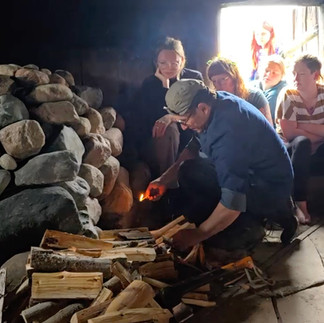 Our last day was Earth. We walked in a quiet pilgrimage through the forests to the ancient village of Kernave. We lit a reconstructed medieval smoke sauna, just as it would have been done hundreds of years ago. We made broth using the fire's heat, picked clovers and nettles to use in ritual and sat around old wooden tables to share food. We sat together in silence in the dark, smoky heat of the sauna and listened to the sounds of water on the stones, of breath, of whisks hitting against the skin, of everything slowing down and coming home.